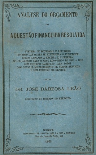 Em 1868, o Governo de então propunha o seu orçamento para o ano seguinte. Em reflexão, José Barbosa LEÃO apresentava o seu entendimento sobre o deficit e as soluções para ele, em livro“Analyse do Orçamento ou a Questão Financeira Resolvida”, com o interessante subtítulo: “ Systema de economias e reformas por meio das quaes se extinguirá o deficit, sendo igualada a receita e a despeza no orçamento para o ano económico de 1869 a 1870, com pequeno sacrifício para todos e com notável melhoramento de muitos serviços e sem prejuízo de nenhum.”