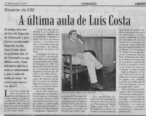 Não me vou alongar com palavras. O Jornal Reconquista descreve o percurso do Luís Costa e estou convencido de que, no dia 25 de Novembro, na sua última aula como docente, vai ter uma sala bem cheia e muito atenta.