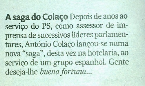Já agora, em oportunidade de desejos, que tudo corra a contento na nova actividade profissional que o Expresso publicitou.