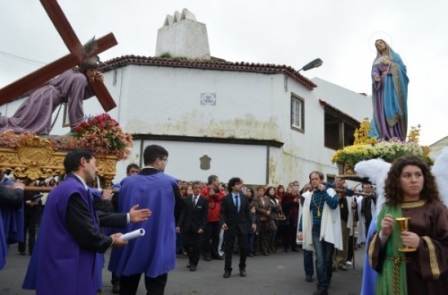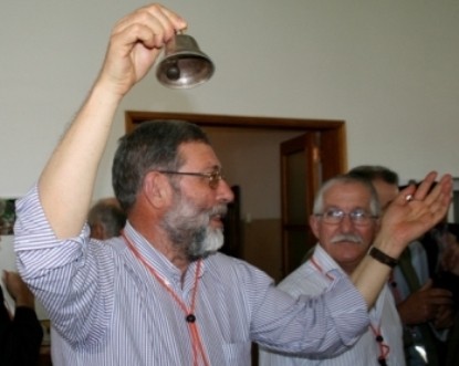 Manuel Domingues, ao meio, "lendo" a sua mensagem pascal!