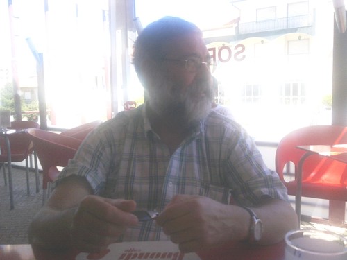 17 de Agosto de 2013, acabado de regressar da minha caminhada matinal, tomado o respectivo banho e pequeno almoço, toca o telefone. Havia acabado de fazer café e colocar ao lume um estufado de legumes para o almoço. O Colaço, de passagem por Abrantes convida-me para tomar um café na Sopadel. Lume no mínimo, café sobre a mesa do computador impossível de tomar porque está demasiado quente, mas a urgência da voz e a tradicional falta de tempo pelos mil afazeres, obrigam a partir. Felizmente houve tempo para uma longa conversa sobre os mais variados assuntos, ainda que condimentada com a loucura que é sair de casa e deixar o fogão acesso. Coisa que o cuidadoso Colaço nunca faria, censurou-me. Levou de troco que também eu nunca faria muitas das cousas que ele faz. E isso é óbvio relativamente a todo e qualquer ser humano.