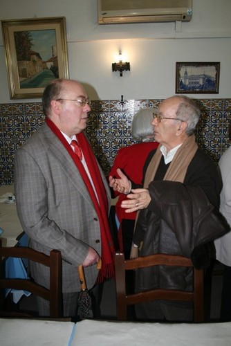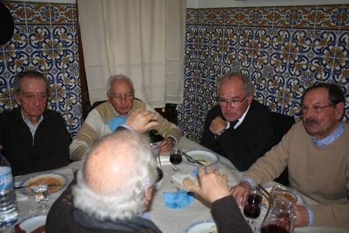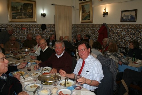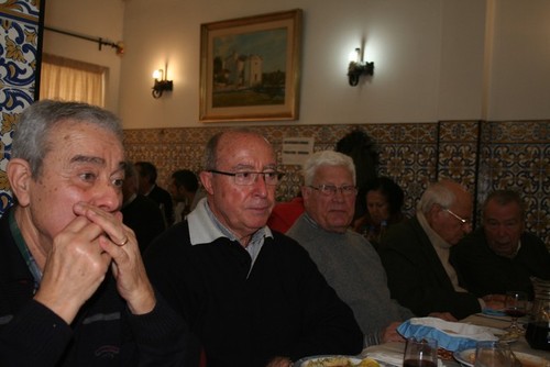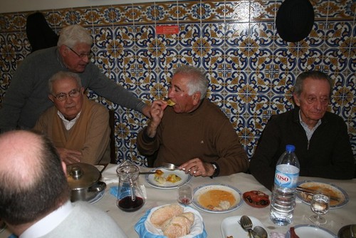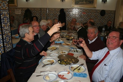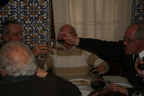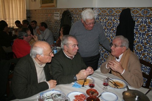 E depois, é bonita aquela maneira de tratarmos por tu o que aparece, quer tenha mais 10 anos, como o César de Oleiros ou menos uns anitos, como o Alves Dias do Orvalho, que hoje conheci pela primeira vez e com quem pude lembrar o P. Antão, já enterrado na Amieira. Também temos depois o grupo dos mais “habituées”, sob a batuta do Nogueira, do Dias Heitor, do Manuel Inácio, do Mendeiros e outros. Também esteve o Rito, que pessoalmente eu mal conhecia, o Silvério, sempre amável, o José Andrade que, com o Pires Antunes, são dois dos que nas sextas-feiras aparecem com frequência na “Parreirinha de Carnide”. O Manuel sempre lembrou o feijão frade de Alcains, onde outro Manuel, o ti Manel, com carinho nos ia deitando mais “maneirinhas de azeite” no prato. Gostei de estar ao lado do Pequito Cravo nestas horas de convívio…